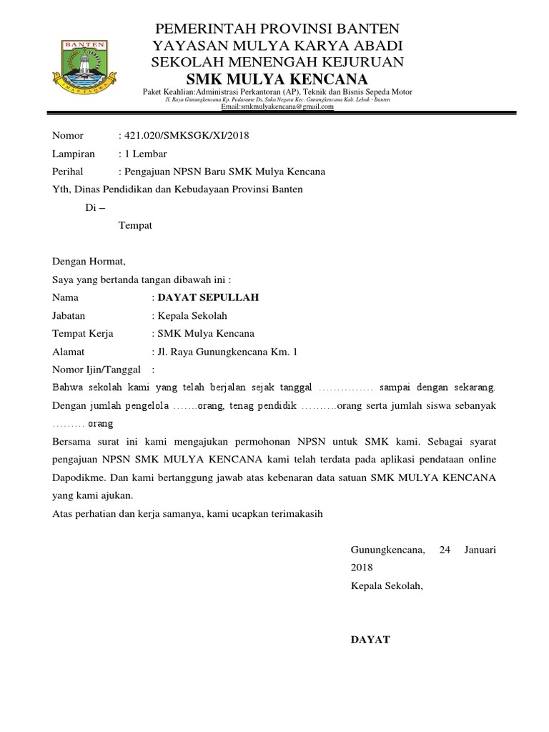 Surat Permohonan Penerbitan Npsn Baru Pdf